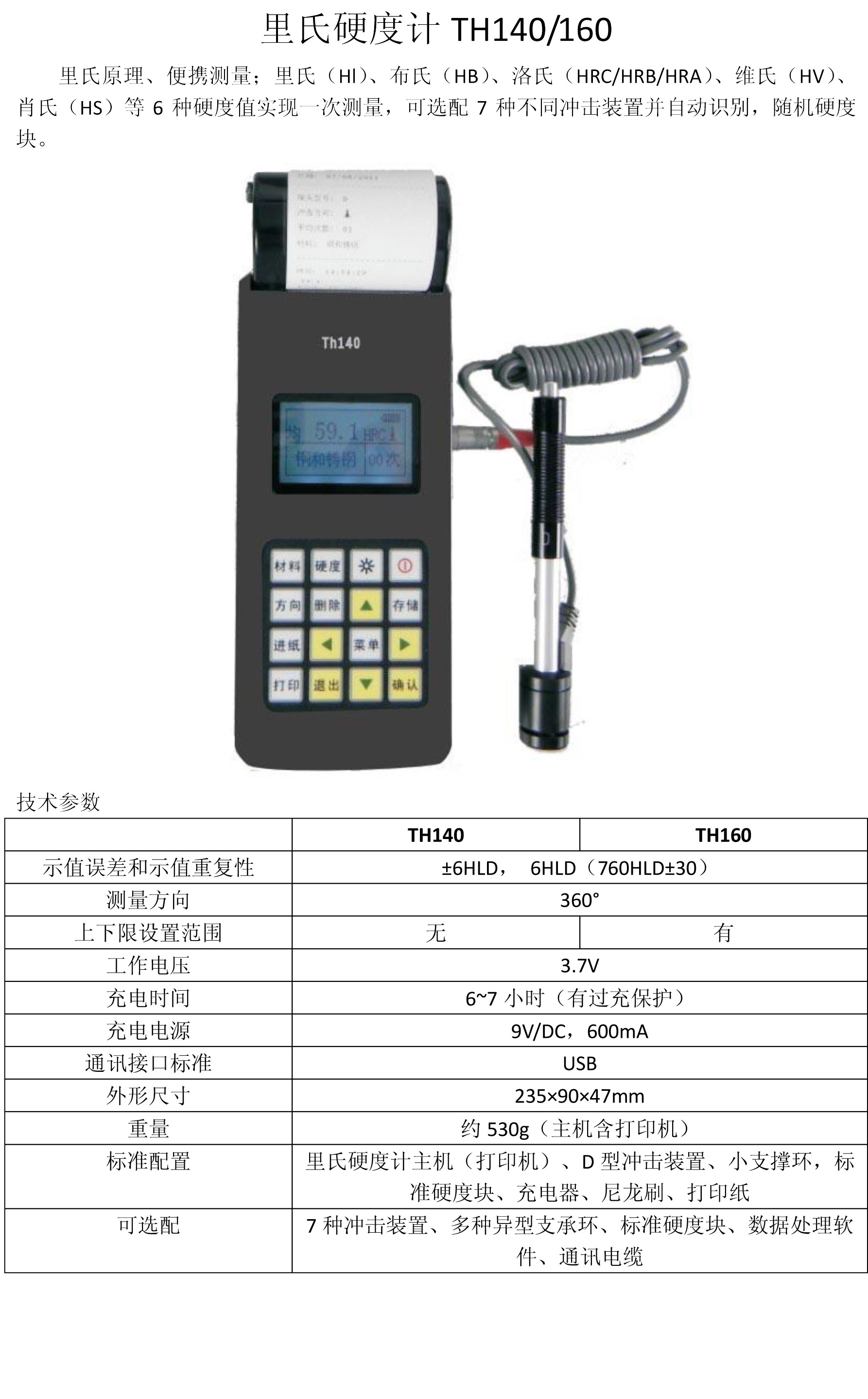 leeb里博便攜式硬度計TH140手持式金屬里氏硬度計自帶打印機(jī)內(nèi)置鋰電池
