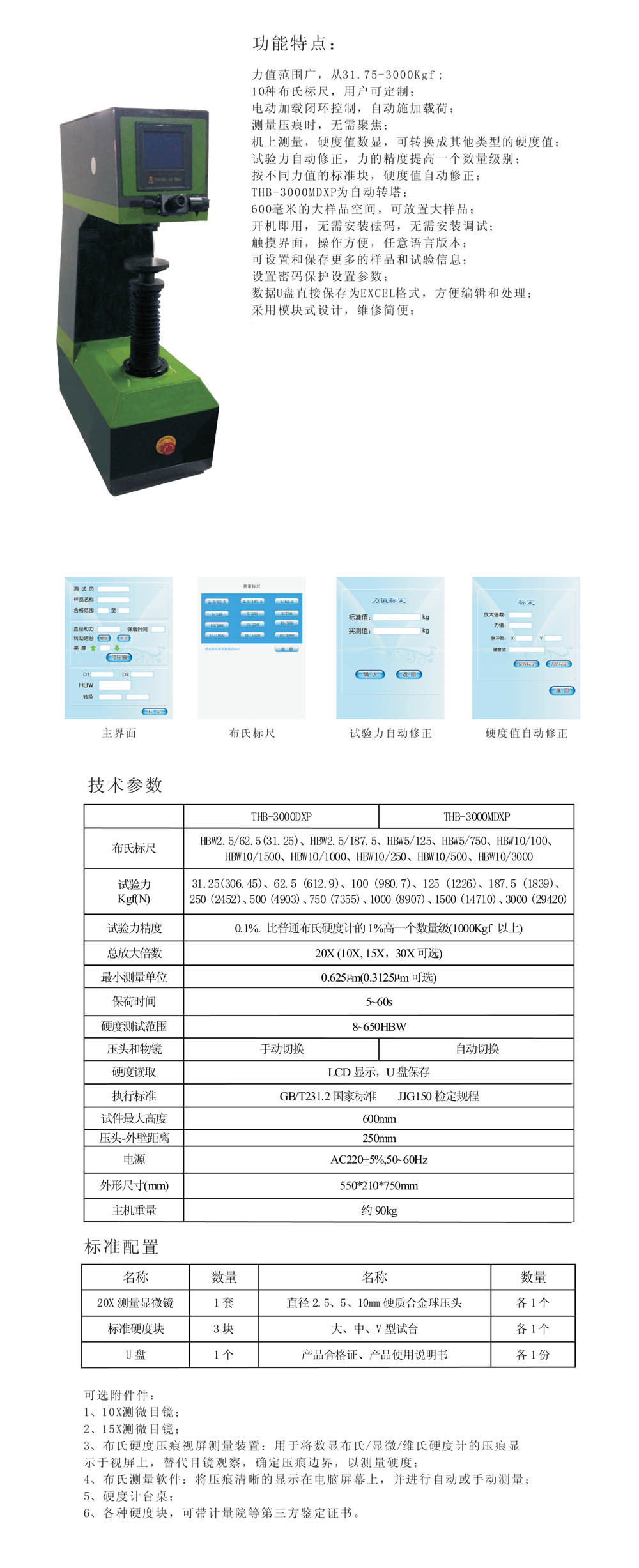 ● 可自動修正測量誤差,硬度自動換算;