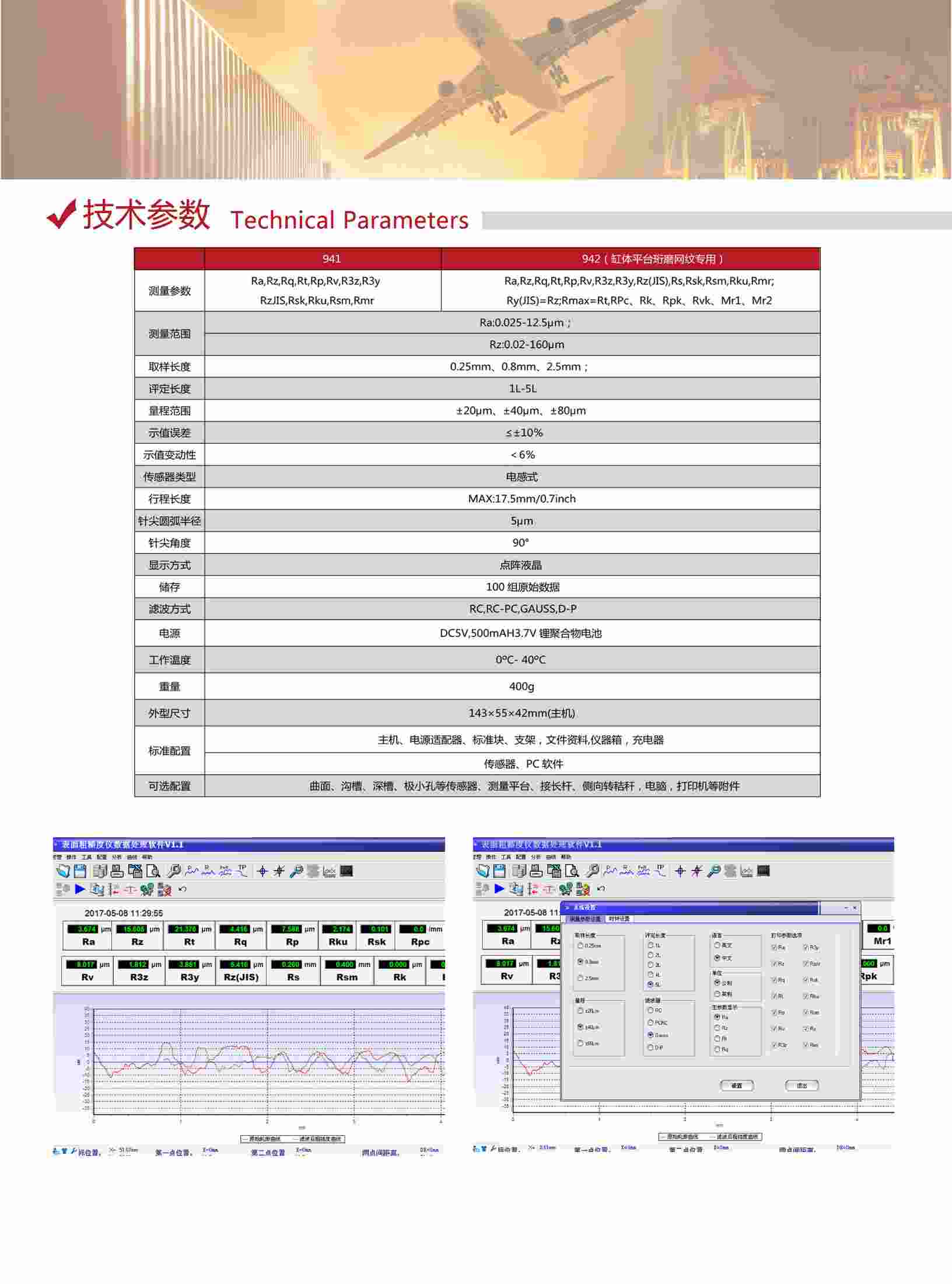 ★ 大量程,多參數(shù)Ra,Rz,Rq,Rt,Rp,Rv,R3z,R3y,RzJIS,Rsk,Rku,Rsm,Rmr;
