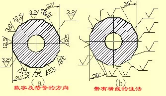 (2)表面粗糙度代號中數(shù)字及符號的方向按規(guī)定標注。