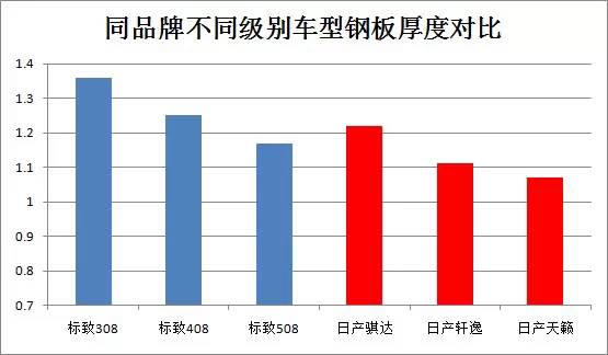 文章開頭提到的一個普遍觀點認為,日系車鋼板較薄而德系美系車鋼板相對較厚,那么實際測試結(jié)果是否如此呢?