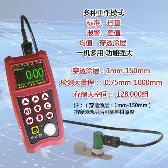 Uee?960型彩色波形顯示測厚儀采用當(dāng)今超聲技術(shù)設(shè)計和制作,適用于材料的穿越涂層測量需求。她是一款功能性能卓越、操作簡便、結(jié)果測厚儀。這款手持式測厚儀可適用于超聲測厚應(yīng)用,而且與雙晶探頭兼容。功能Uee?960測厚儀可適用于應(yīng)用,包括使用雙晶探頭對內(nèi)壁腐蝕的管件進行的管壁減薄的測量,對涂有漆膜的工件進行真實的厚度檢測。方便和空氣歸零,免除了使用試塊校測的傳統(tǒng)方式!