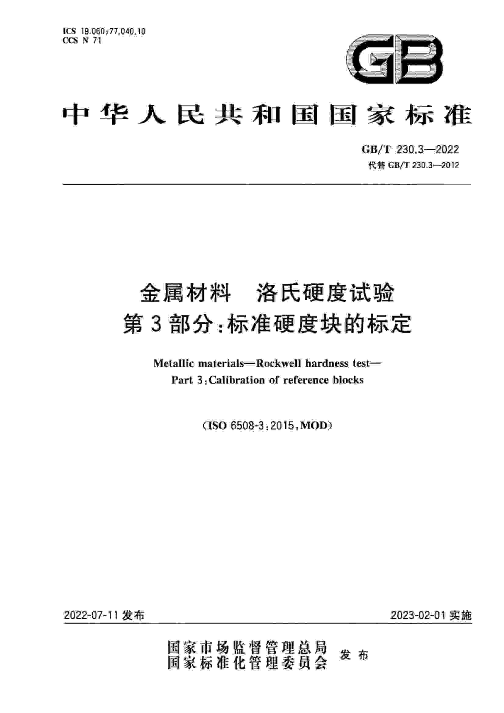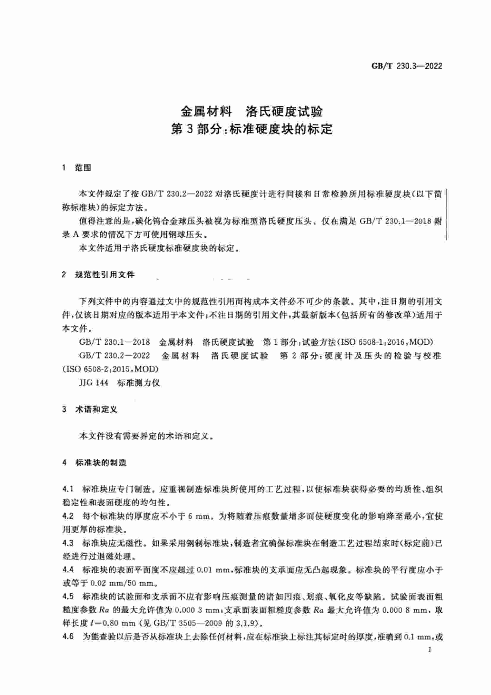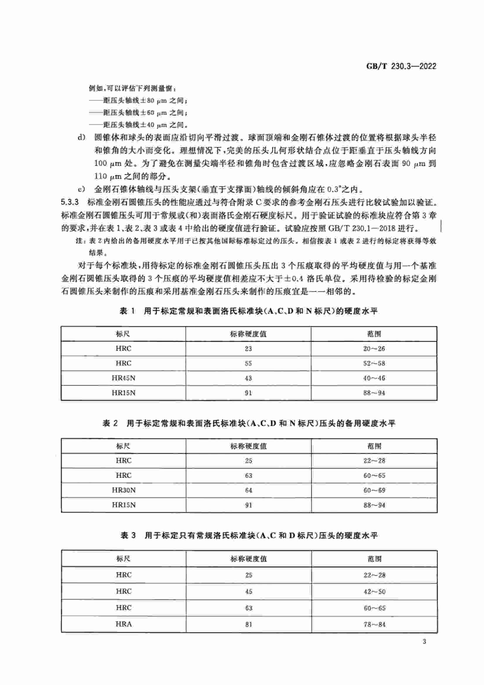 GBT 230.3-2022 金屬材料 洛氏硬度試驗 第3部分:標(biāo)準(zhǔn)硬度塊的標(biāo)定
