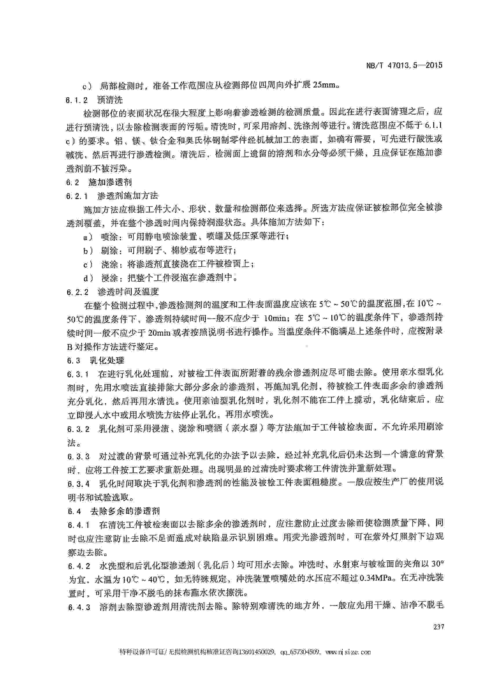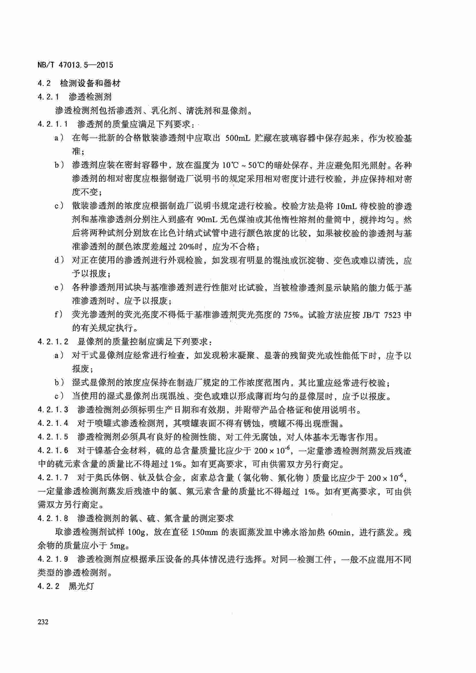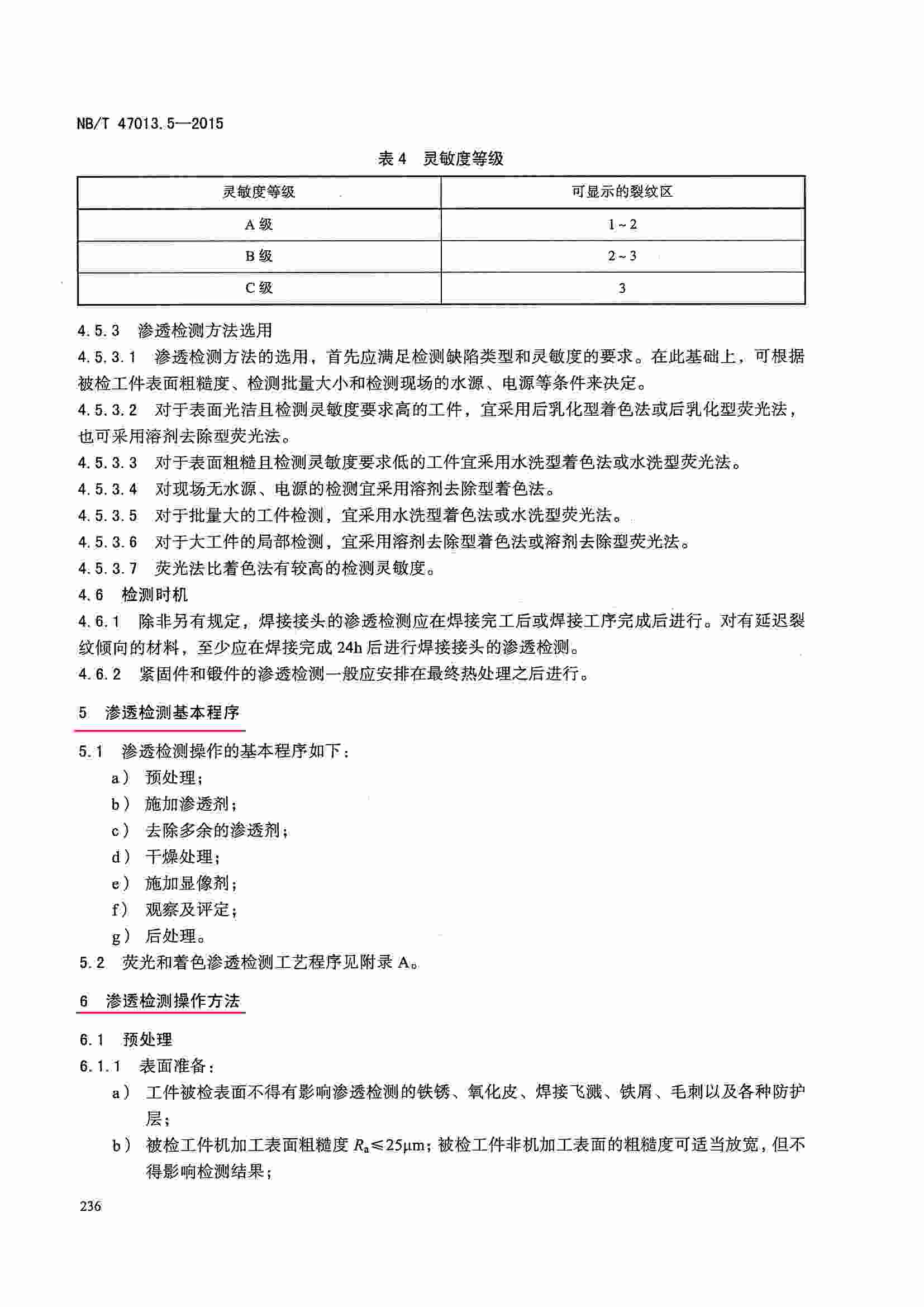 NB/T47013.5-2015 承壓設(shè)備無損檢測(cè) 第5部分:滲透檢測(cè)