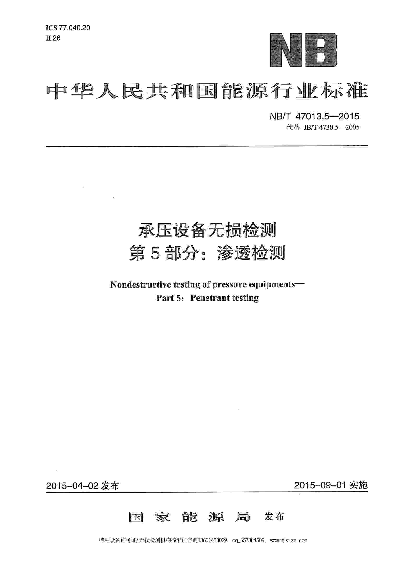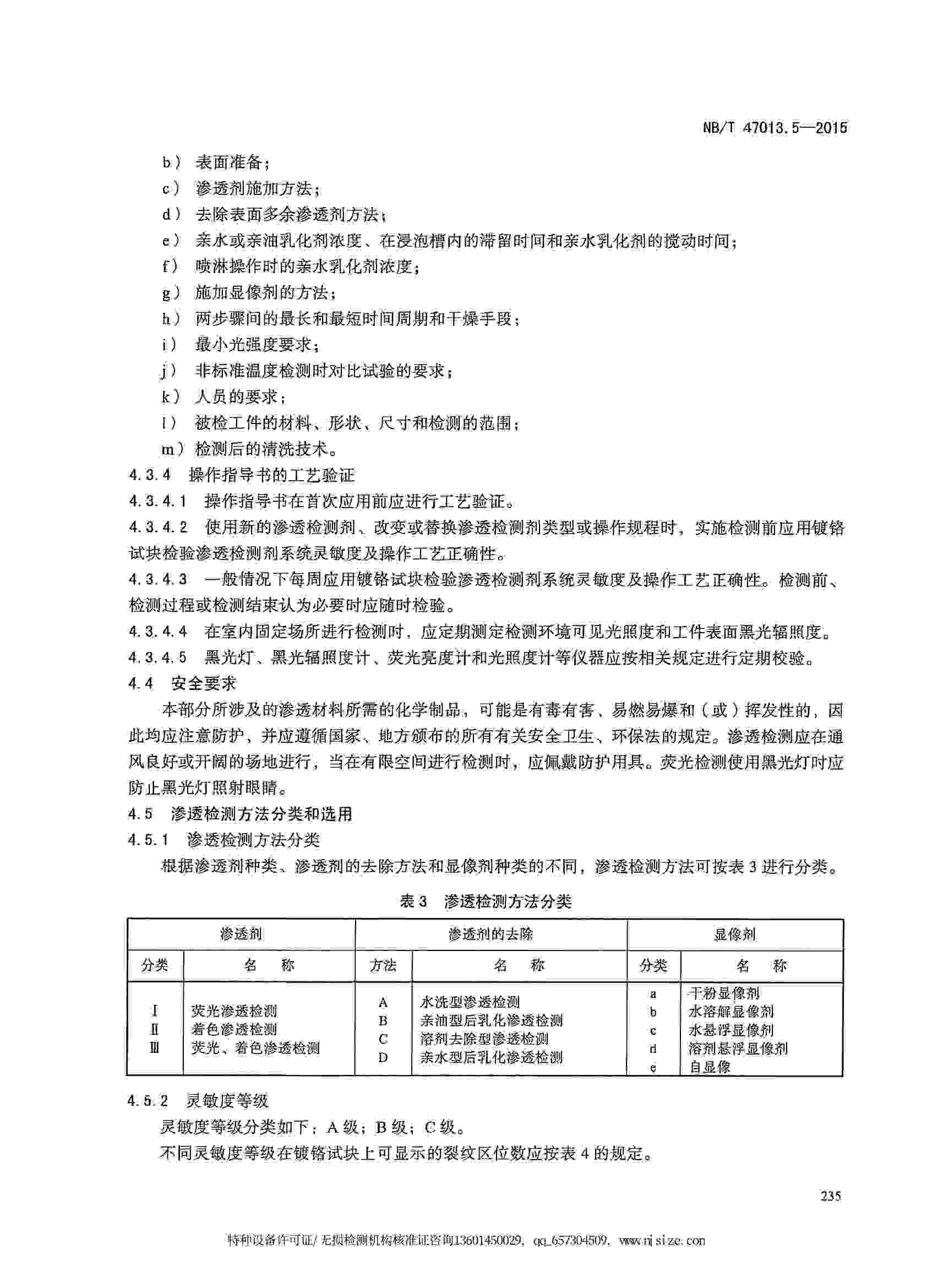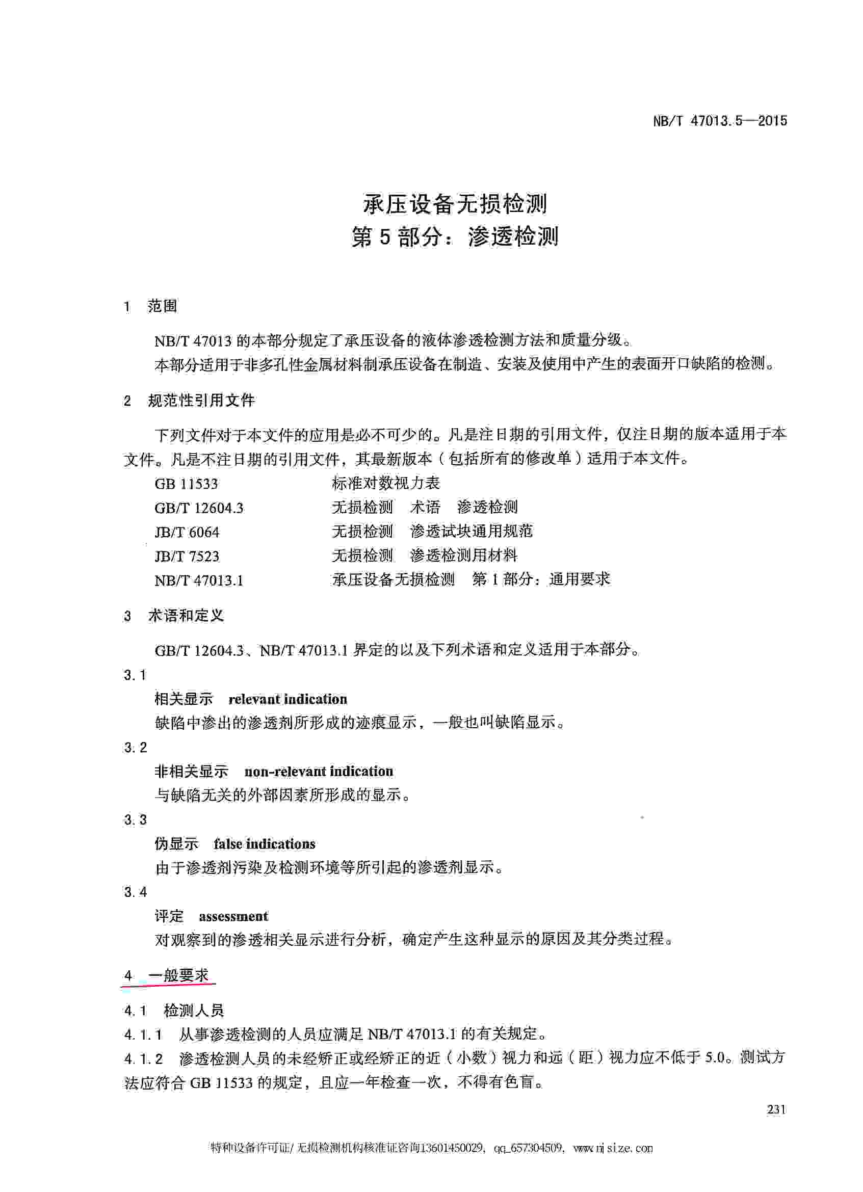 NB/T47013.5-2015 承壓設(shè)備無損檢測(cè) 第5部分:滲透檢測(cè)